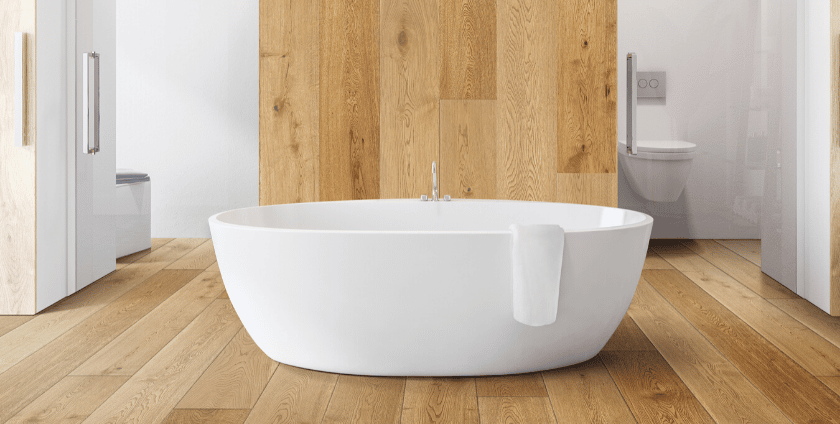 Solid hardwood is also an absolute no-no to be used as bathroom floors because it does not offer any protection against moisture. Even a small amount of water can damage the wood.